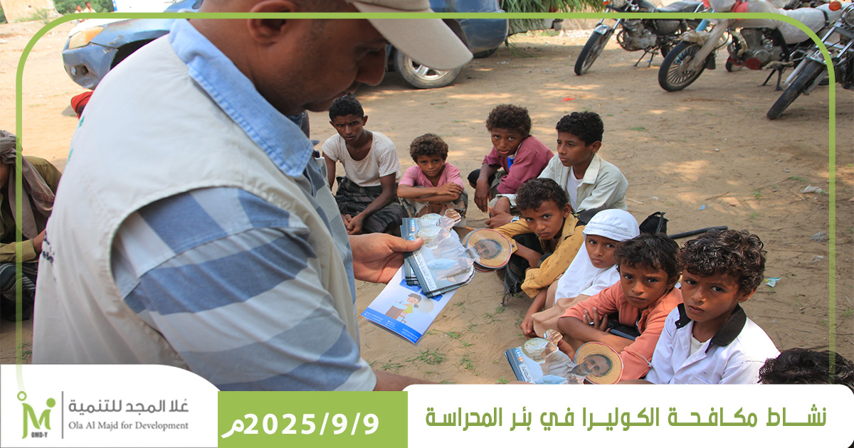 في إطار جهودها المستمرة لحماية المجتمع وتعزيز الصحة العامة، نفذت مؤسسة عُلا المجد للتنمية (OMD-Y) حملة توعوية وتكاملية لمكافحة الإسهالات المائية (الكوليرا)، وذلك ضمن مشروع إعادة تأهيل بئر المحراسة في منطقة المحراسة بمديرية بيت