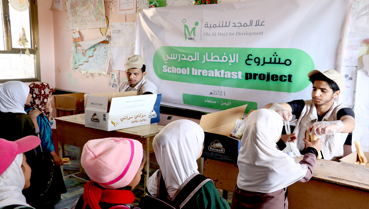 تقوم مؤسسة عٌلا المجد للتنمية في كل عام بتنفيذ مشروع الإفطارالمدرسي والذي تدور فكرته حول توفير وجبة افطار لمعظم