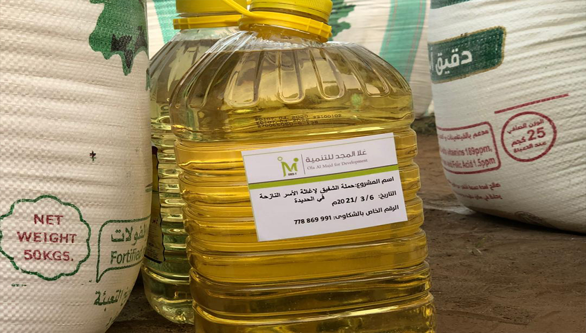 تستمر مؤسسة عٌلا المجد للتنمية OMD-Y للشهر الثاني على التوالي بتقديم السلة الغذائية للأسر النازحة والمتضررة في محافظة الحديده مديرية